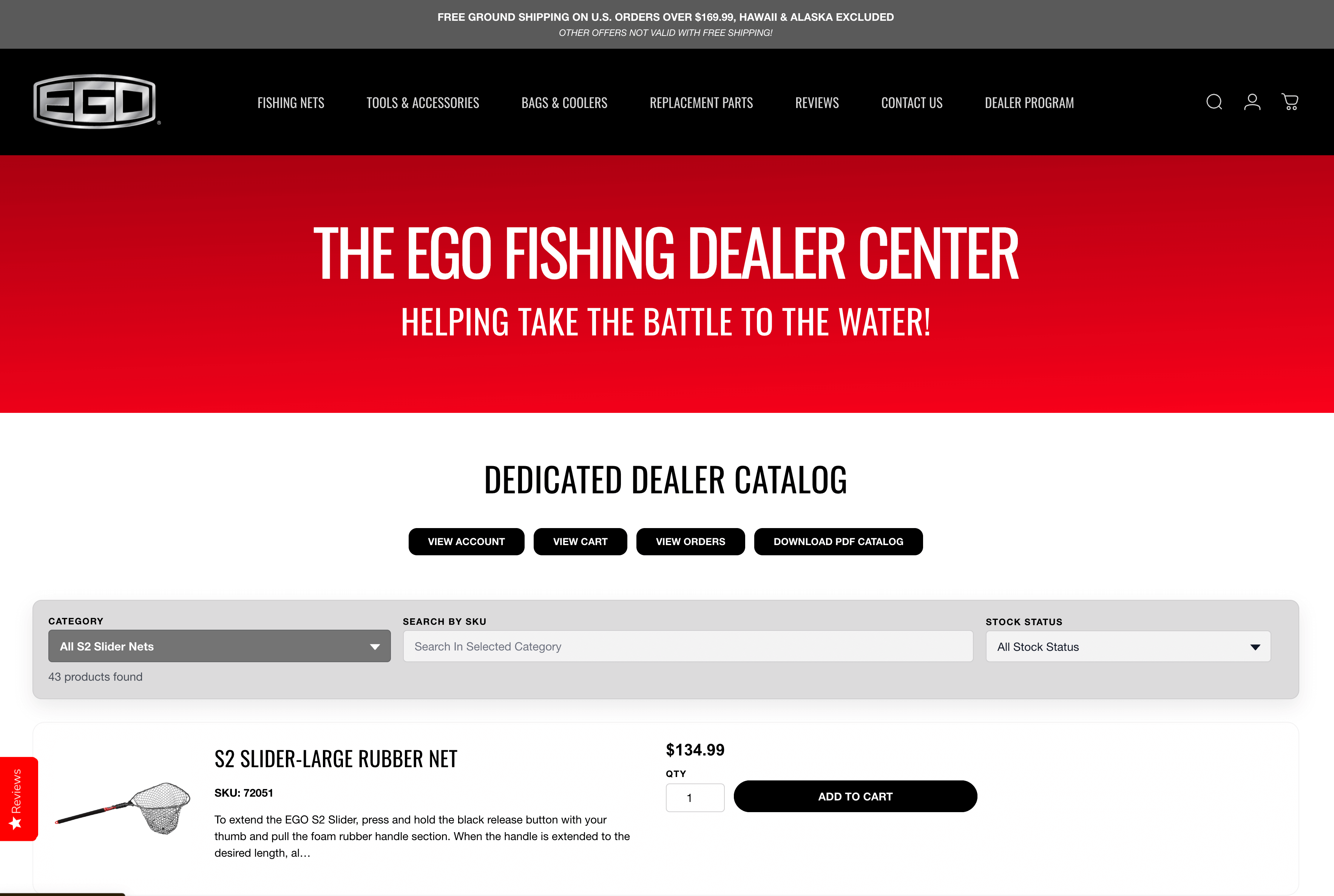 Welcome to EGO Fishing’s Dealer Direct Program—our new direct-to-dealer wholesale ordering platform built to eliminate distribution headaches and put you in control.