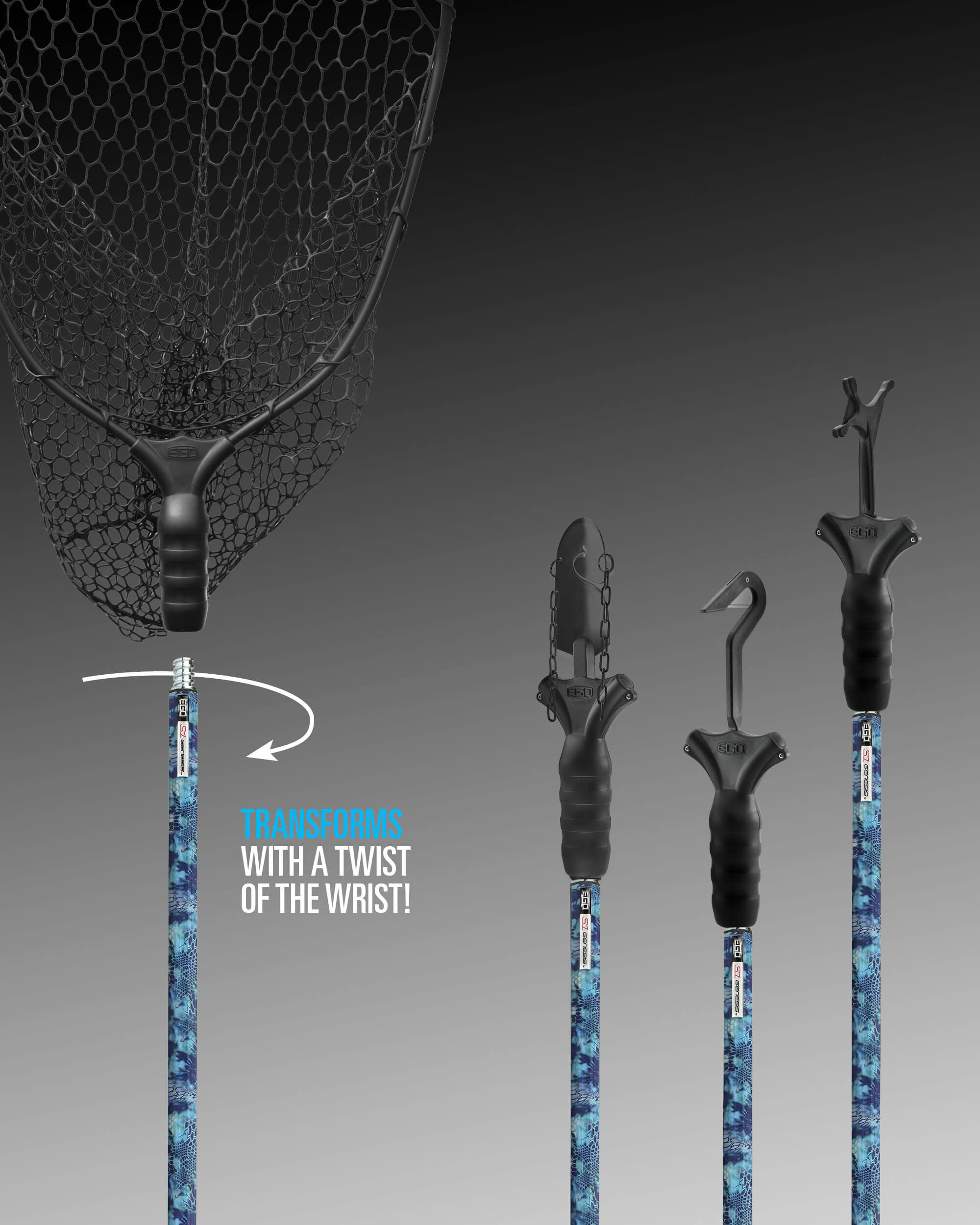 The innovative EGO S1 Genesis Kryptek product system has been designed to meet a broad spectrum of fishing and boating demands. The S1 Genesis Kryptek handle, the backbone of the system, utilizes a strong lightweight hexagonal extruded aluminum design that provides economical and dependable functionality. With a simple twist of the wrist, any EGO accessory or landing net attachment can be securely fastened and ready for use. The modular platform allows for component interchangeability and compact storage.