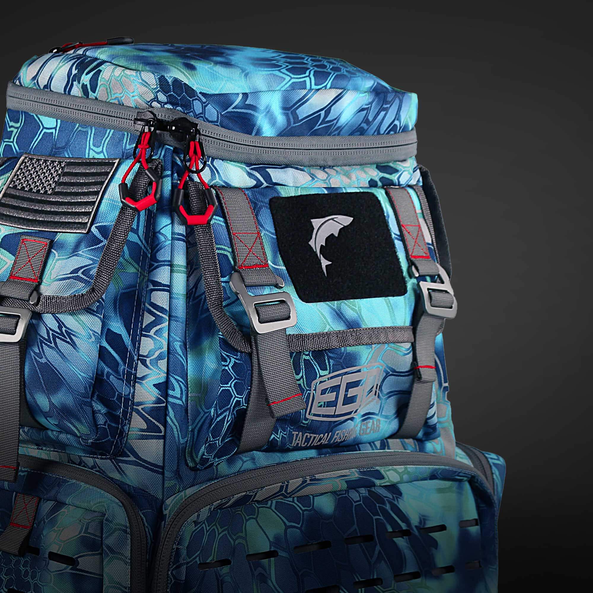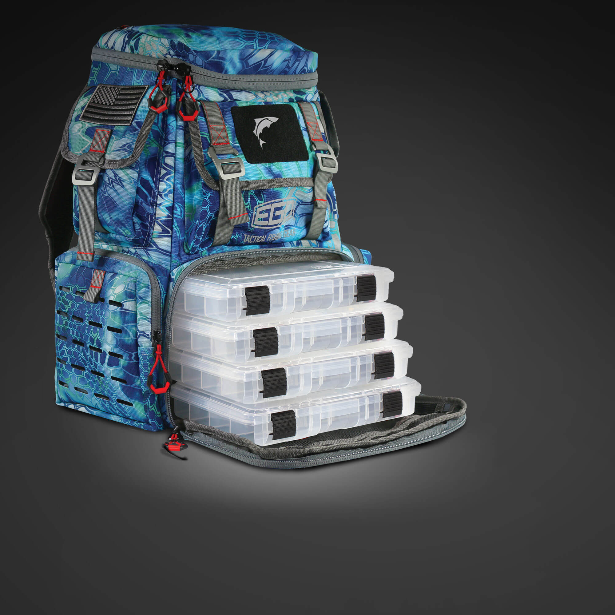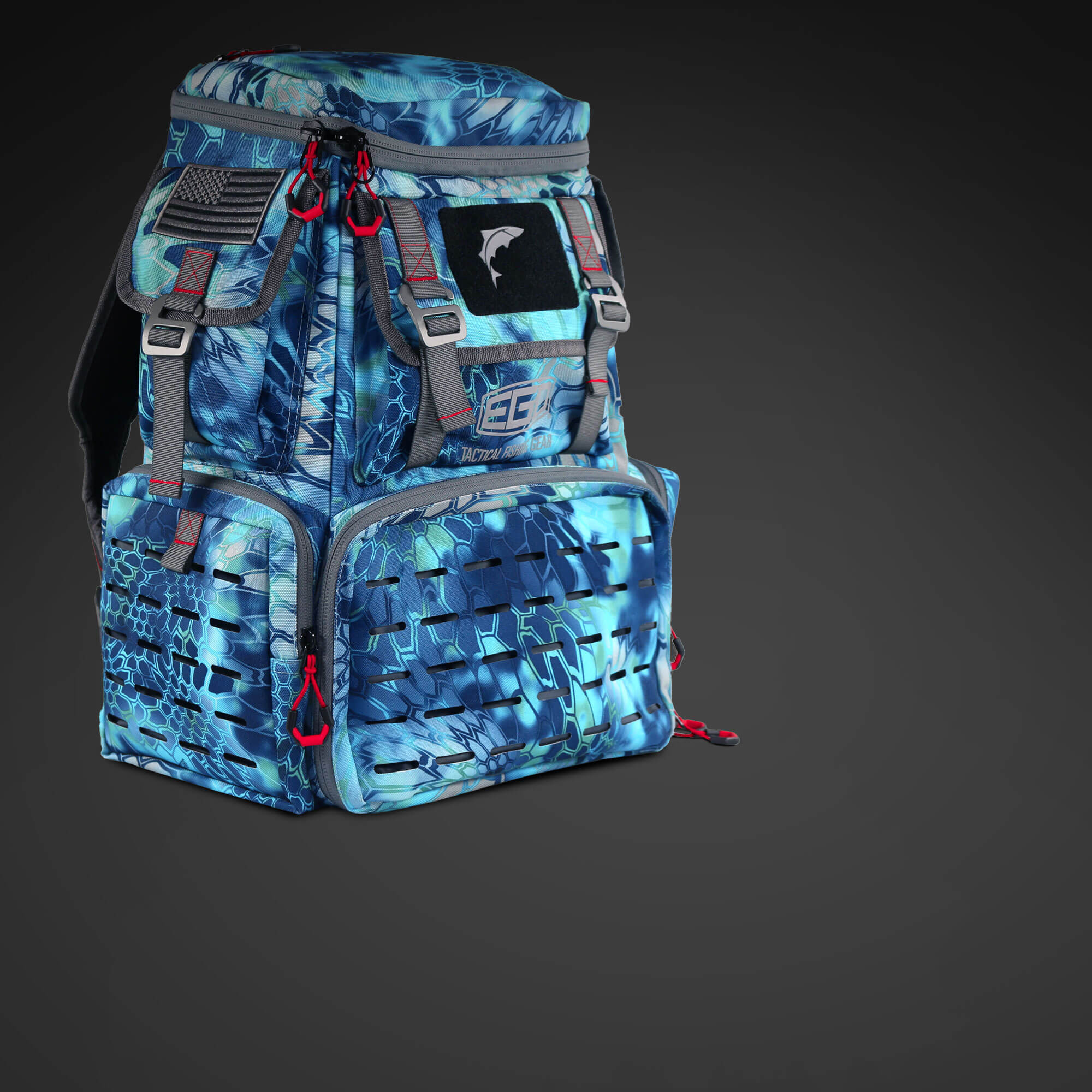 The EGO Kryptek Tactical Tackle Box Backpack will give you an aggressive look on and off the water. The product features multiple storage pockets, laser-cut molle loops for external tool management, Kryptek camo technology, and four clear tackle trays. Constructed with extra durable 1000 denier nylon fabric and PVC coated backing for a measure of water resistance, these bags will endure the toughest conditions on and off the water.